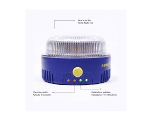 LUZ EMERGENCIA TRAFICO V-16 GOODYEAR. BATERIA 9V 6LR61 INCLUIDA). LUZ LED AMARILLO AUTO Y BLANCO PARA FUNCION LINTERNA. VISIBILIDAD 1km. DURACION DE BATERIA: 6h (FUNCION FLASH) / 5h (FUNCION LINTERNA). MEDIDAS: Ø9x6cm (diámetro/alto) HOMOLOGACIÓN PC19080129 SEGÚN NORMATIVA V-16 DE LA DIRECCIÓN...